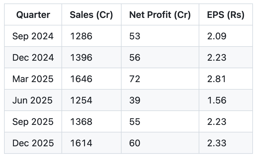 Dec 2025: Net Profit ₹60 Cr, EPS ₹2.33