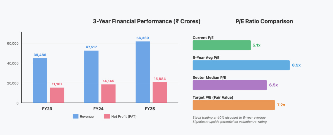 The numbers tell a good story. Over the last three years, revenue grew at 13% annually - from ₹39,486 crores in FY23 to ₹56,369 crores in FY25. That’s steady, predictable growth. Net profit jumped from ₹11,167 crores to ₹15,884 crores in the same period - a 17% annual growth rate.