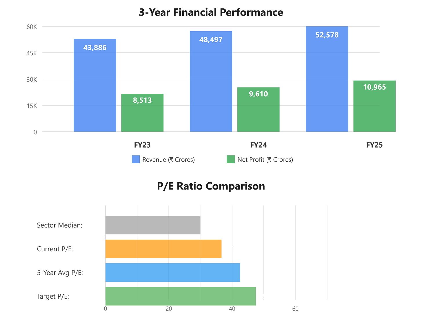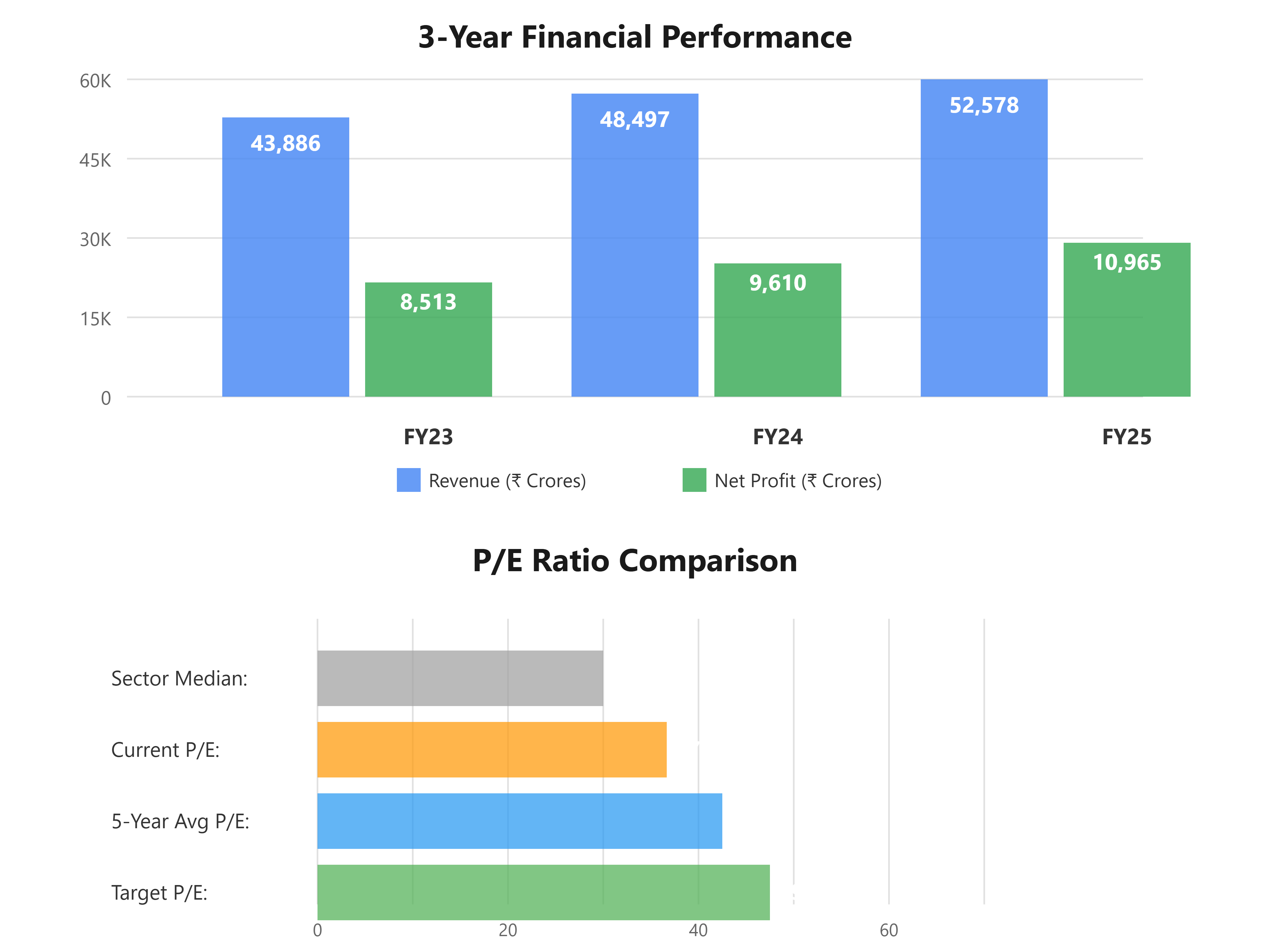 EPS grew from ₹35.32 in FY23 to ₹45.55 in FY25, that’s a 29% increase over two years or about 14% annually. If they can maintain even 12-13% EPS growth going forward, the current valuation looks reasonable.