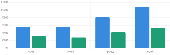 YearRevenuePATFY22₹551 Cr₹313 CrFY23₹555 Cr₹280 CrFY24₹812 Cr₹419 CrFY25₹1,082 Cr₹527 Cr